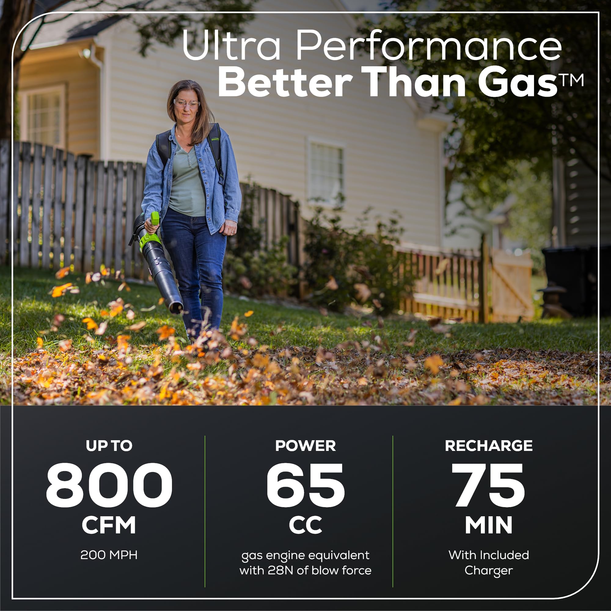 Greenworks 80V Backpack Leaf Blower - 800 CFM/200 MPH Brushless Motor, Dual 5.0Ah Batteries & Rapid Charger, Adjustable Turbo Mode, Ergonomic Design for Yard Cleanup